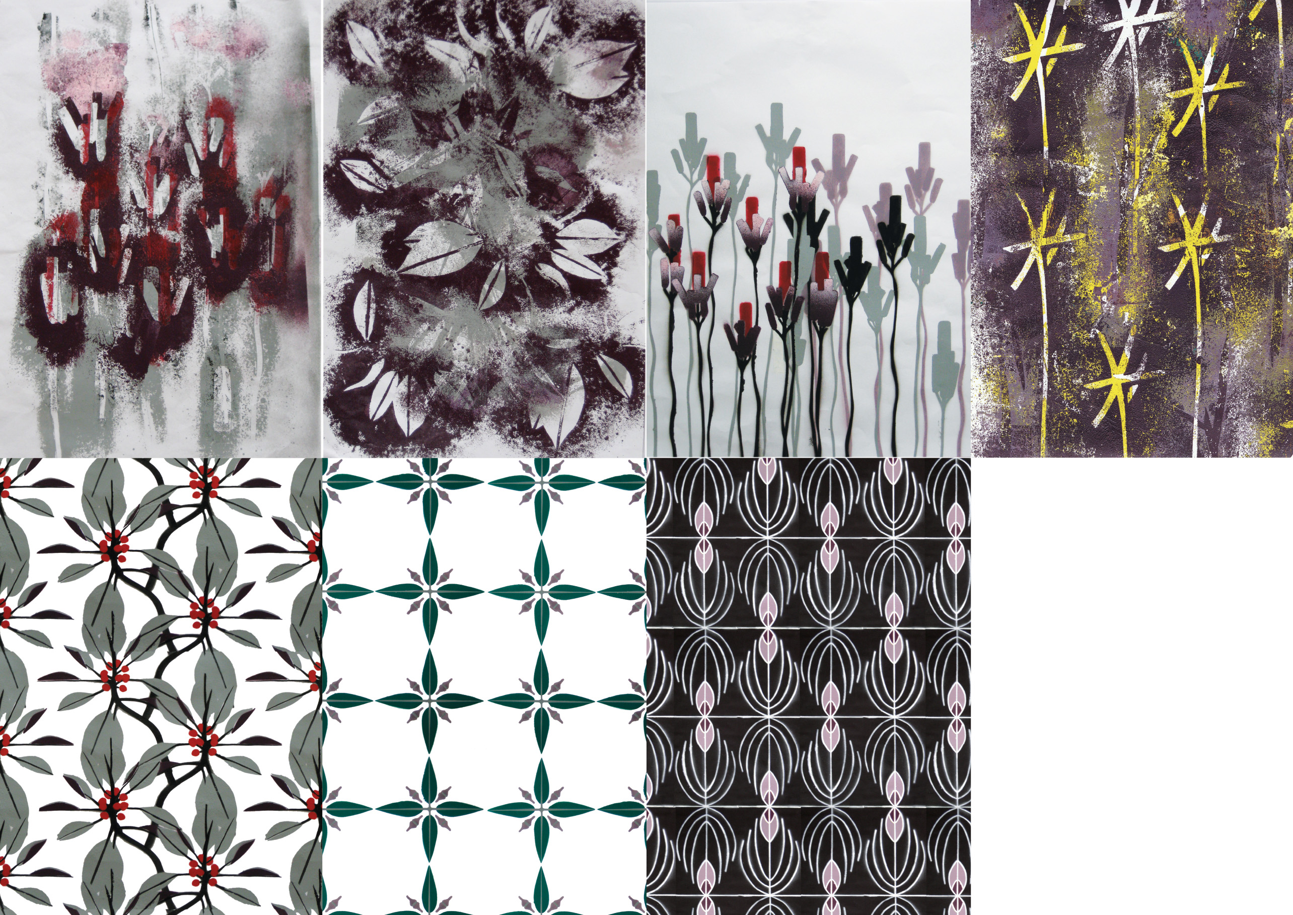 The range is intended for interiors and wallpapers and is readily transferable to the preferred production method of traditional screen-printing, due to its similarities with stencilling, thus maintaining the feel and intent of the original designs.